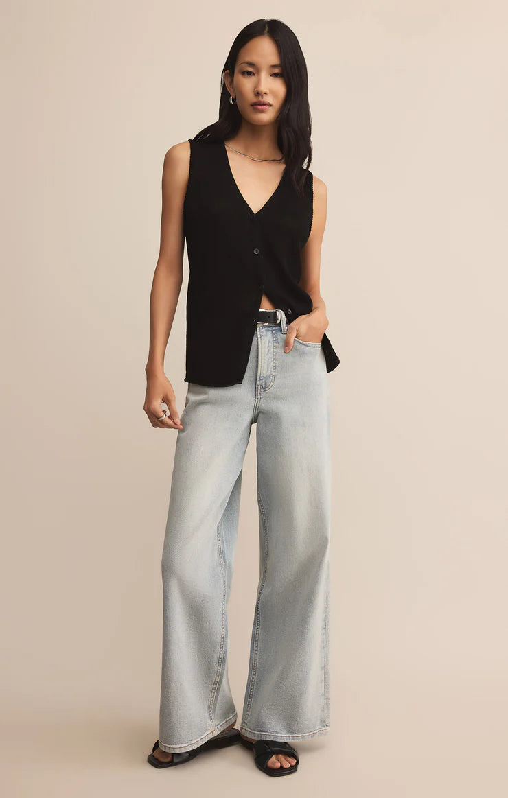 Easy layering starts here! This relaxed sweater vest has a button-up front, flattering v-neckline, and wide straps. Soft, versatile, and designed for endless styling options.