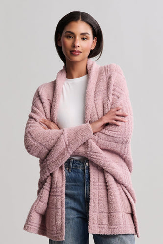 BAREFOOT DREAMS COZYCHIC COTTON TONAL PLAID BLANKET WRAP - TEABERRY