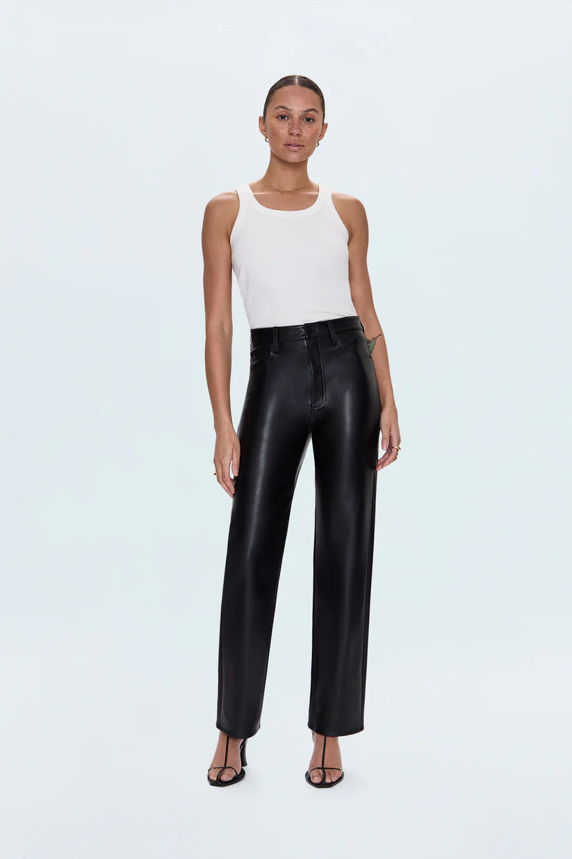 The best-selling straight leg that gets it right. Cassie's super high rise creates a sculpted silhouette that's both commanding and comfortable. The classic straight leg falls to a full-length hem, finished with a 31" inseam for a timeless fit. Crafted from alt leather in Onyx, a rich black finish.